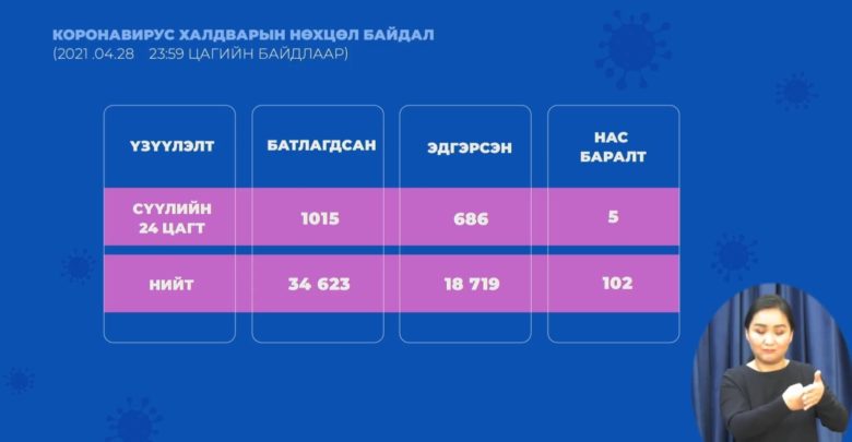 Нүүр /Focus/1015 хүнээс коронавирус илэрч, 5 хүн нас баржээ FocusЭМЯ 1015 хүнээс коронавирус илэрч, 5 хүн нас баржээ ТагКороновирус ЭМЯ