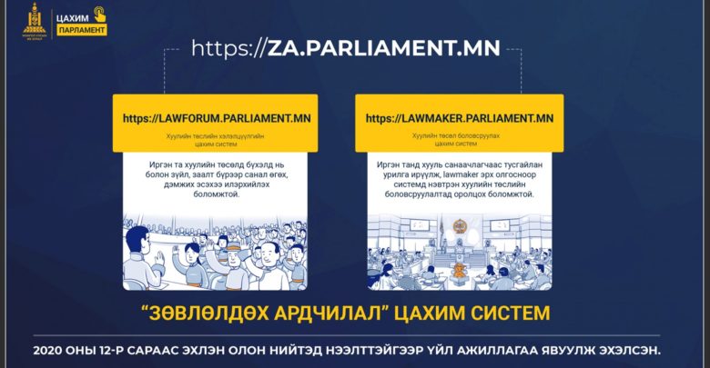 Монгол Улсын Их Хурал үйл ажиллагаандаа иргэд, олон нийтийг оролцоог хангах хүрээнд зөвлөлдөх санал асуулга, нийтийн сонсгол, уулзалт, зөвлөгөөн, хэлэлцүүлэг зохион байгуулах, хуулийн төсөлд бичгээр болон цахимаар санал өгөх, хуулийн төслийн ажлын хэсэгт оролцох зэрэг хэлбэрүүдийг ашиглаж байна. 2020 оны 12 дугаар сараас эхлэн ил тод, цахим парламент болох зорилтын дагуу “зөвлөлдөх ардчилал” буюу https://za.parliament.mn цахим системийн хүрээнд хууль санаачлагчдад зориулсан www.lawmaker.parliament.mn, хуулийн төсөлд иргэд, олон нийт санал өгөхөд зориулсан www.lawforum.parliament.mn зэрэг цахим платформыг ашиглаж байна. Иргэдийн хүсэлтийг цахимаар авдаг E-petition системийг нэвтрүүлсэн. Иргэдийн идэвхийг сайжруулахын тулд УИХ-аас Иргэдийн улс төрийн эрхийн тухай хуулийн төслийг боловсруулж, батлахаар ажиллаж байна” гэдгийг онцлон тэмдэглэв.