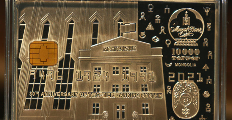 Монголбанкны Эрдэнэсийн сангаас 2021 онд тохиож буй Монгол улсад 2 шатлалт банкны тогтолцоо үүссэний 30 жилийн ой, Үндэсний төлбөрийн ₮ карт EMV чиптэй болсныг тэмдэглэж, төлбөрийн картны хэмжээтэй “9496-1924-1991-2021” дугаар бүхий “₮-Карт” дурсгалын зоос худалдаанд гаргалаа.