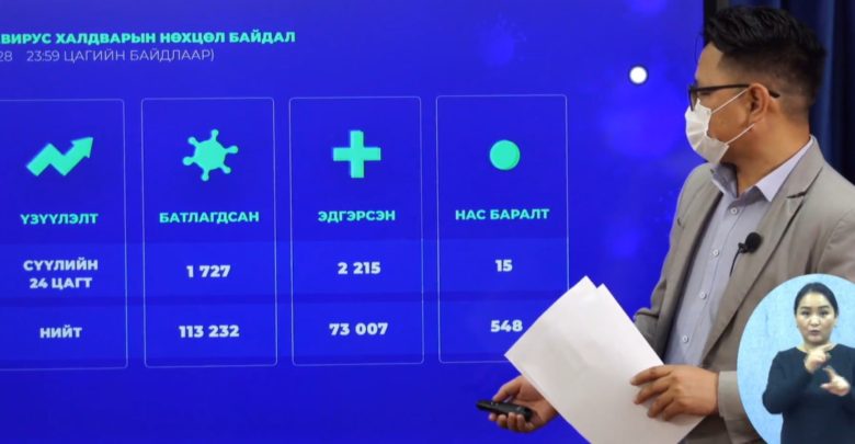 Нүүр /Focus/1727 шинэ тохиолдол бүртгэгдэж, 15 хүн нас баржээ FocusЭМЯ 1727 шинэ тохиолдол бүртгэгдэж, 15 хүн нас баржээ ТагКороновирус ЭМЯ