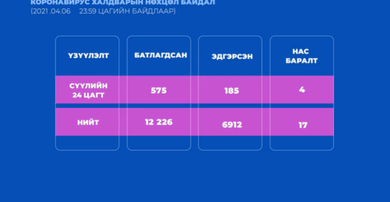 Нүүр /Focus/2485 шинэ тохиолдол бүртгэгдэж, 15 хүн нас баржээ FocusЭМЯ 2485 шинэ тохиолдол бүртгэгдэж, 15 хүн нас баржээ ТагКороновирус ЭМЯ