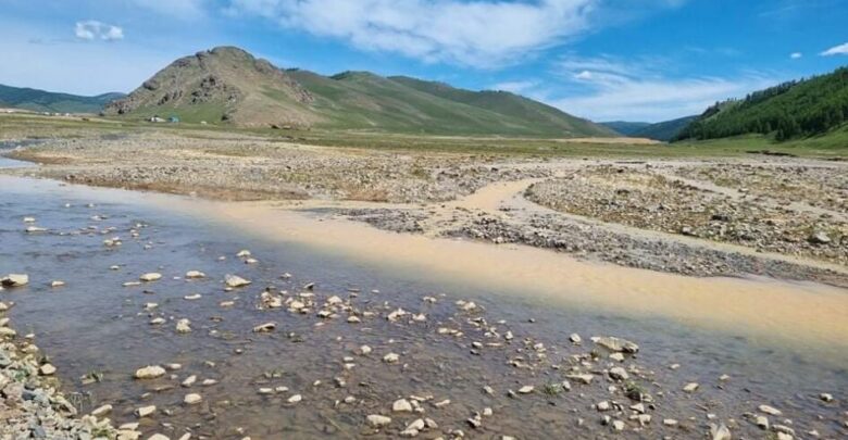Шийртийн гол шавраар урсаж, Орхон гол ширгэж байна
