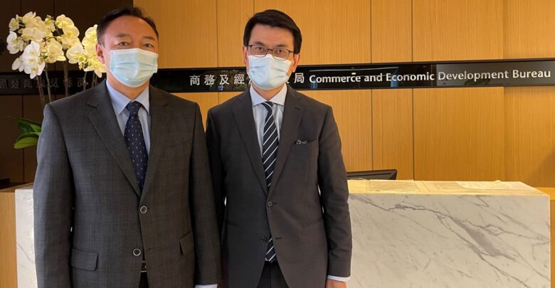Монгол улсаас Хонконгт суугаа Ерөнхий консул Г.Жаргалсайхан Хонконгийн Худалдаа, эдийн засгийн нарийн бичгийн дарга Эдвард Яу Танг-вахтай 2021 оны 7 дугаар сарын 05-нд Засгийн газрын төв байранд уулзлаа.