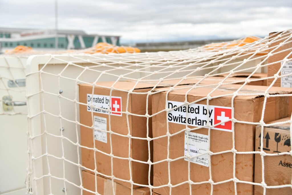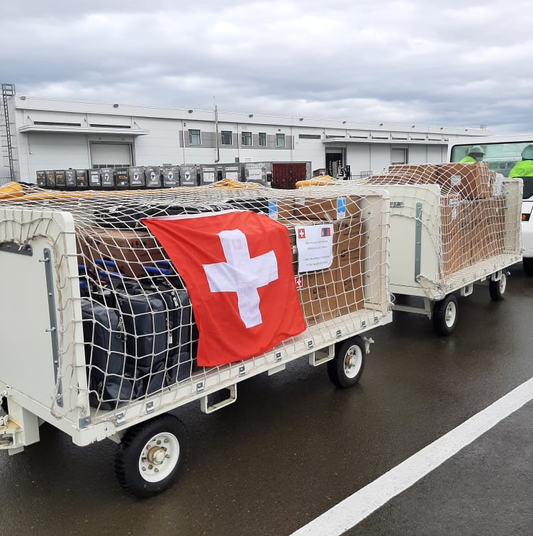 Монгол Улсын өнөөгийн эрүүл мэндийн нөхцөл байдлыг харгалзан үзэж, мөн Монгол Улсын Засгийн газрын хүсэлтийг хүлээн авч үзсэний үндсэн дээр Швейцарын Засгийн газар хүмүүнлэгийн тусламжийг Ковид 19 цар тахалтай тэмцэх үйл явцад нь дэмжлэг үзүүлэхээр шийдсэн байна. Швейцарын тусгай үүргийн онгоц энэ Даваа гарагт Дүбендорф хотоос нийт 700.000 швейцар франкийн үнэ бүхий хоёр мянган тонн жинтэй тоног төхөөрөмжийг тээвэрлэн Улаанбаатарыг чиглэн нислээ. Энэхүү онгоцонд Швейцарын армийн эмийн сангаас хандивлаж буй 40 ширхэг хүчилтөрөгчийн аппаратаас гадна 45 ширхэг хүчилтөрөгчийн баяжуулагч болон бусад эмнэлгийн хэрэгсэлийг ачсан байна.