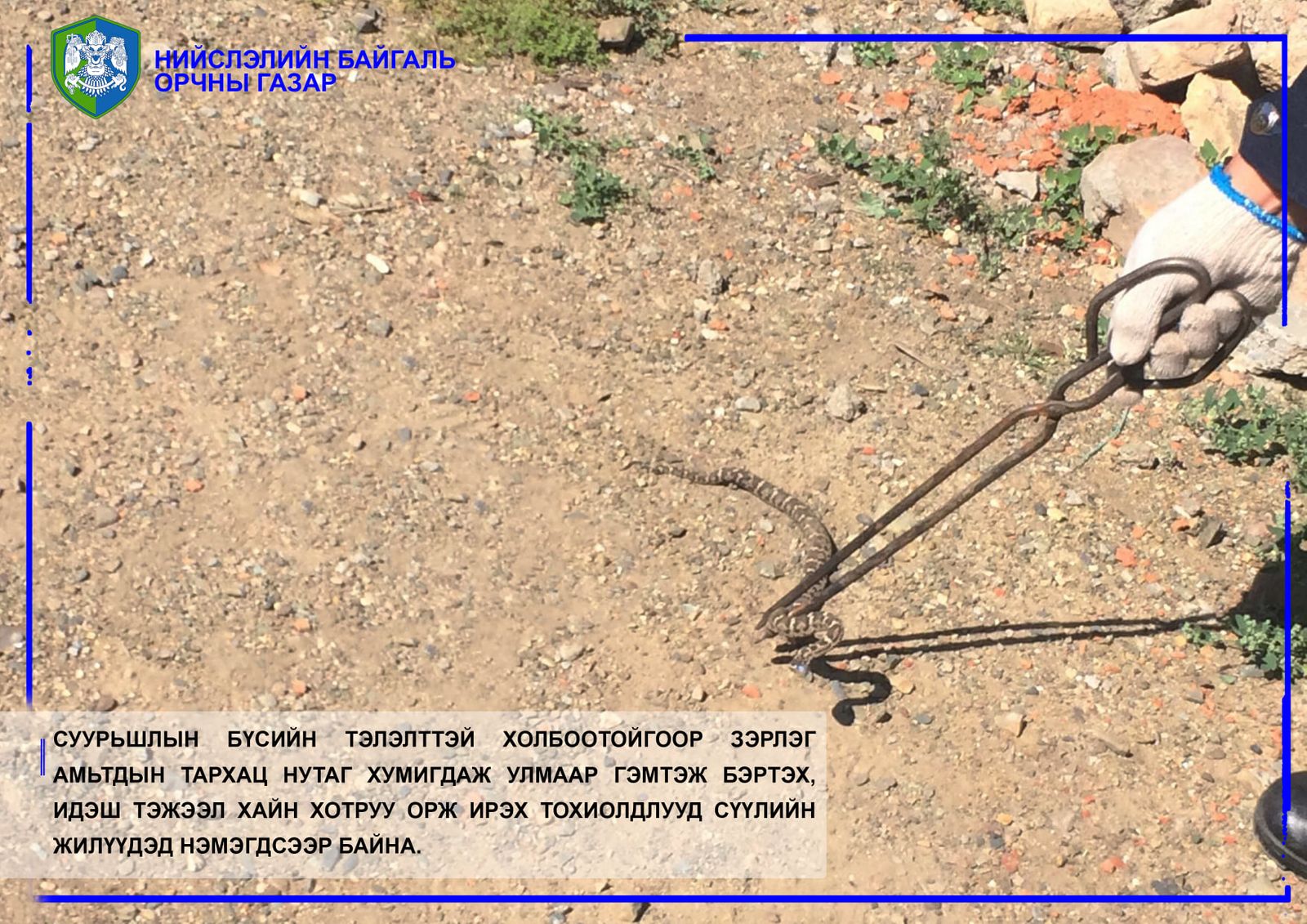 - хоёр бамбай хоншоорт могойг тус тус барьж байгальд эргүүлэн тавьсан байна.