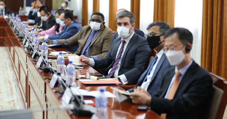 Монгол Улсын Ерөнхий сайд Л.Оюун-Эрдэнэ уулзалтыг нээж цар тахлын үеийн эдийн засаг, нийгэм, эрүүл мэндийн бодлогоо танилцуулж, цаашид хийхээр төлөвлөж буй арга хэмжээний талаар дэлгэрэнгүй мэдээлэл өглөө.
