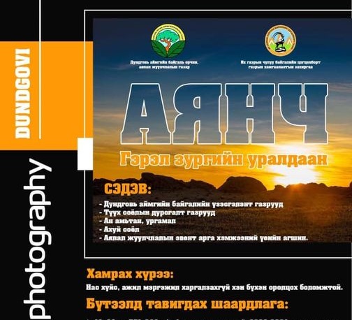 Дундговь аймгийн БОАЖГ, Их газрын чулуу байгалийн цогцолборт газрын хамгаалалтын захиргаанаас хамтран зарласан “Аянч” гэрэл зургийн уралдаан 9 дүгээр сарын 11 хүртэл үргэлжилнэ.