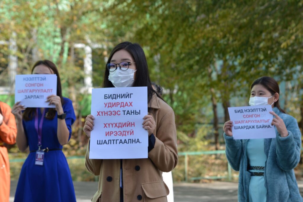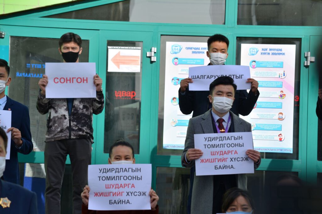 84-р сургуулийн багш ажилчид, ҮЭХ-ноос шударга томилгоог хүсч буй талаарх шууд бичлэгийг ЭНД ДАРЖ үзнэ үү.