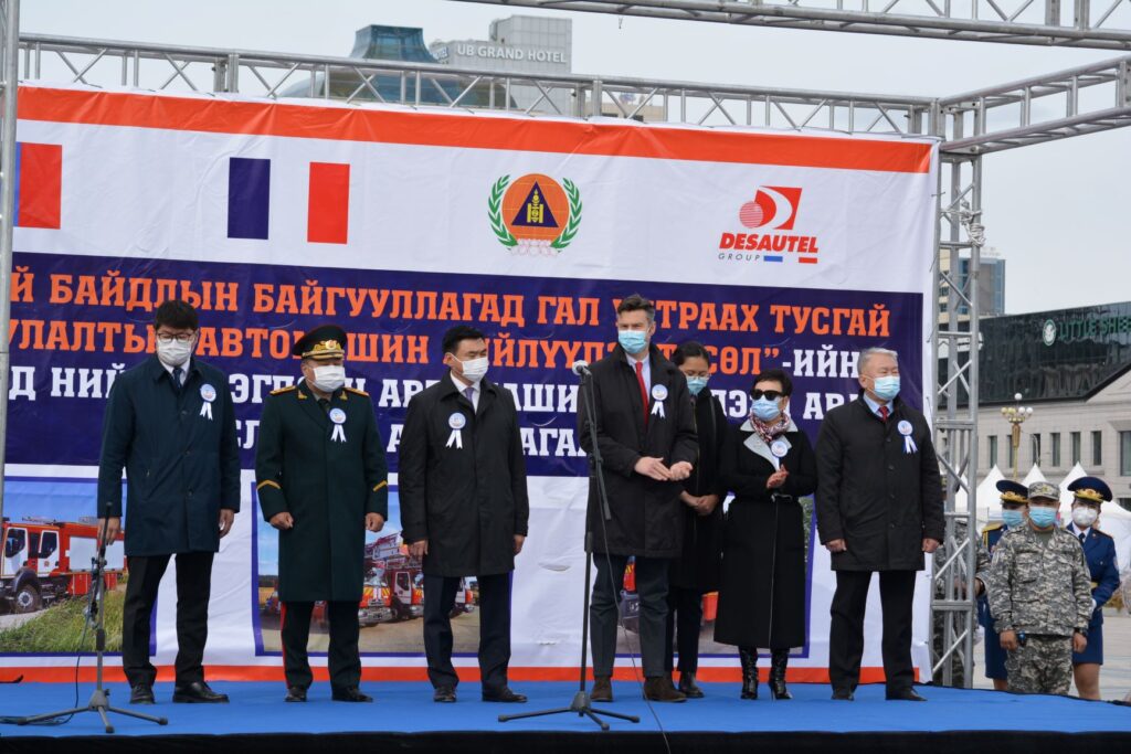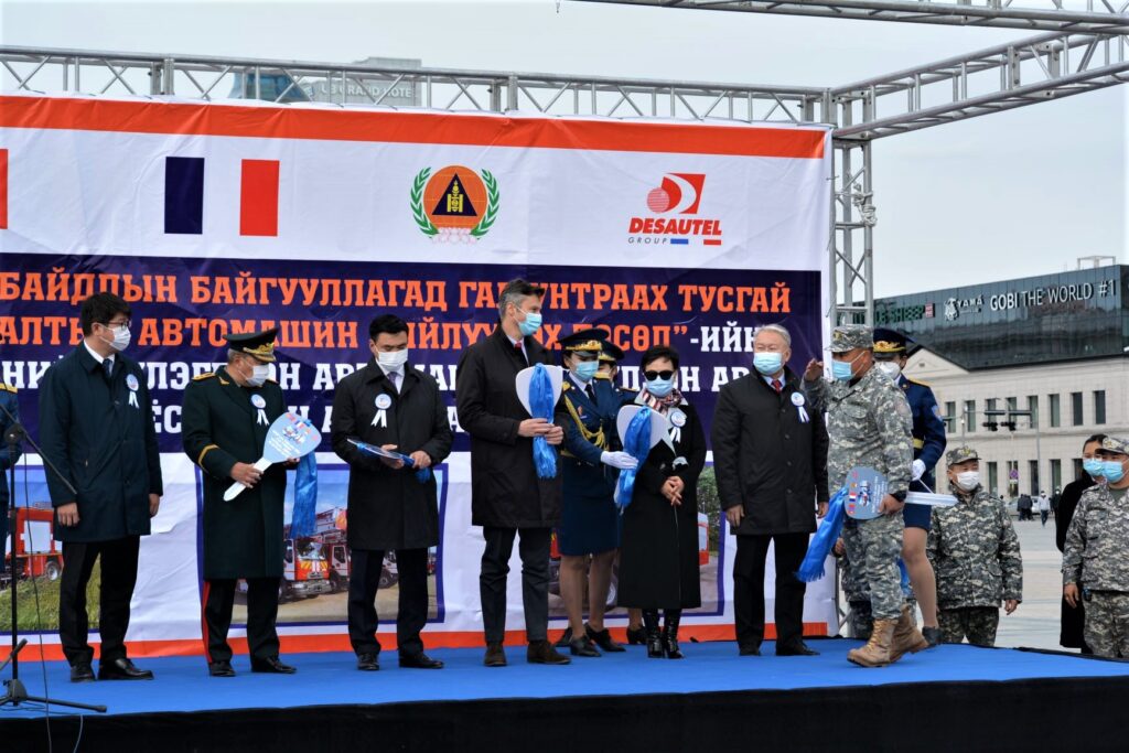 Тус хэлэлцээрийн хүрээнд Онцгой байдлын ерөнхий газар, Бүгд Найрамдах Франц Улсын “Десотел” компанитай 2020 оны 01 дүгээр сарын 30-ны өдөр байгуулсан “Гал түймэр унтраах тусгай зориулалтын автомашин, техникийг нийлүүлэх” гэрээний дагуу 14 985 000 еврогийн өртөг бүхий 4 төрлийн 42 автомашин 2021 онд бүрэн нийлүүлэгдэж дуусах юм. Эхний ээлжийн 2 төрлийн 21 гал түймэр унтраах үндсэн албаны автомашиныг хүлээн авах арга хэмжээ өнөөдөр Сүхбаатарын талбайд боллоо.