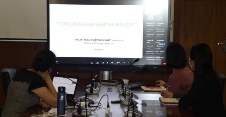 Байгаль орчин, аялал жуулчлалын яам “Ногоон ажлын байр ба жендэр” хэлэлцүүлгийг Азийн сантай хамтран зохион байгууллаа. Монгол Улсад болон олон улсын түвшинд ногоон ажлын байрыг жендэрийн асуудалтай холбон судалсан байдлыг тодорхойлох, байгаль орчны салбарт ногоон ажлын байрыг нэмэгдүүлэх үндсэн зорилготой.