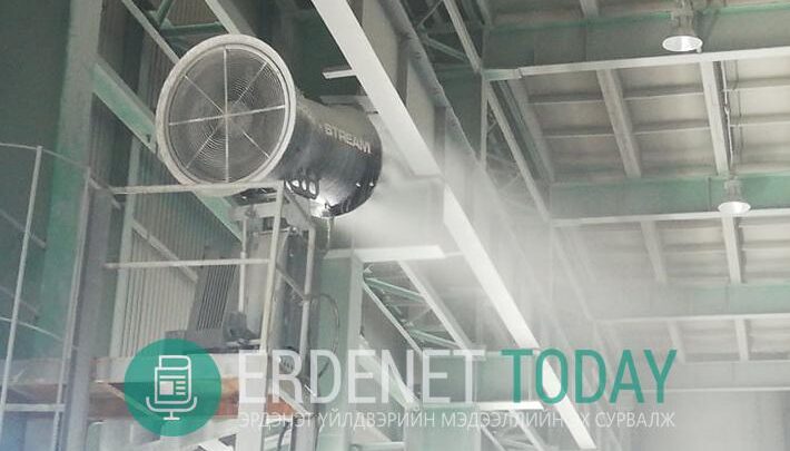 Эрдэнэт үйлдвэр ТӨҮГ-ын Баяжуулах үйлдвэрийн Бутлан тээвэрлэх хэсгийн хүдрийн 11 ба 18-р агуулах, Татаж чангалах хэсэгт Герман, Бельгийн хамтарсан Spray Stream компанийн тоосжилт бууруулах тоног төхөөрөмж суурилуулж, өнгөрсөн сард ашиглалтад орууллаа. Энэ нь усны дусланцараар агаарт мананцар үүсгэн, нарийн ширхэгт тоосонцрыг өөртөө шингээн буулгах төхөөрөмж юм.