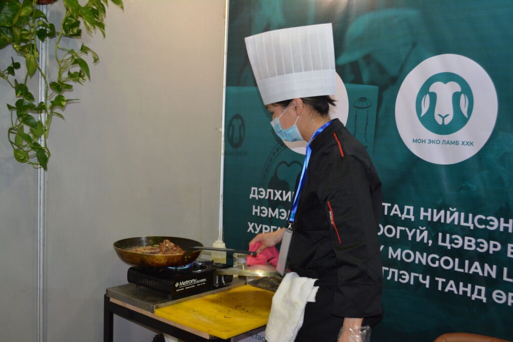 -Тийм. Бид Монгол брэндээрээ дотоодын зах зээлээ хангаад, хөгжүүлэлт хийгээд дараа нь гадаад зах зээл рүү гаргах зорилт тавиад явж байна. Монгол малын махыг гадныхан ангийн махтай адилтгадаг. Бэлчээрийн өвс ургамал идэж өсдөг учраас эрүүл, органик, уураг амин дэмээр баялаг. Бид 200 мянган малчин өрхтэйгээ хамтраад хурганы махны үйлдвэрлэл эрхэлж байгаа гэсэн үг. Энэ хөтөлбөрийн хүрээнд нялх хурганы тэжээл гэдэг инноваци шингэсэн бүтээлийг ХААИС, Биотехнологийн хүрээлэнтэй хамтран гаргаад байна. Энэ тэжээлийг хэрэглээнд бүрэн нэвтрүүлчихвэл махны гарц сайжирч, дараагийн зорилтууд хэрэгжиж эхэлнэ. Бидний жуулчны баазуудаар дамжуулан монголын брэнд бүтээгдэхүүнээ жуулчдад танилцуулж, хөдөө аж ахуйг дэмжсэн экспорт хийх бодлогын хүрээнд энэхүү үзэсгэлэнд оролцож байгаа.