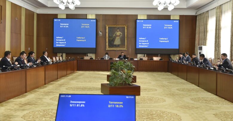Улсын Их Хурлын Үйлдвэржилтийн бодлогын байнгын хорооны өнөөдрийн (2021.11.09) хуралдаан 10 цаг 10 минутад ирц бүрдсэнээр эхэлж, “Дэд хорооны бүрэлдэхүүнд өөрчлөлт оруулах тухай” Улсын Их Хурлын тогтоолын төслийг хэлэлцлээ. Тогтоолын төслийг Үйлдвэржилтийн бодлогын байнгын хорооны дарга, Улсын ИХ Хурлын гишүүн Б.Чойжилсүрэн танилцуулав.
