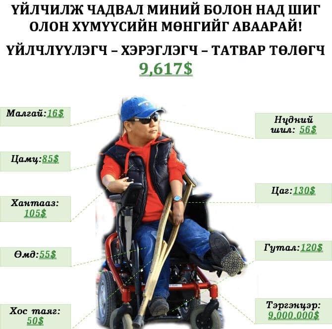 Баазууд заримдаа нэг баян өвгөн ирэх болохоор 00-оо яах вэ гэж утасддаг. Тэр үед нь ингэх, тэгэх хэрэгтэй, налуугаа ингэж шийдвэл зүгээр хэмээн зөвлөхөөр “Яанаа ямар их зардалтай юм бэ. Долоо хоног 2 хүүхэд хөлслөөд өргүүлье” гэдэг. Энэ бол харалган байгаагийн шинж. Удаан хугацаандаа энэ асуудлыг шийдээд явъя гэсэн байгууллага одоохондоо надтай таараагүй л байна. Тэргэнцэр түрээсийн үйлчилгээг анх бий болгоход муу ёртой юм, хүний зовлонгоор бизнес хийлээ, наадахыгаа үнэгүй өг, тэртээ тэргүй халамжаар үнэгүй олгодог гэхчлэн олон ч хүн хараасан даа. Гурван сарын дараагаас бэрхшээлтэй, бэрхшээлгүй хүн байтугай жуулчны компаниуд ч түр хугацаагаар авч хэрэглэж эхэлсэн. “Манай оронд ийм үйлчилгээ байхгүй байхад Монголд байдаг юм байна шүү дээ” гэсэн хүмүүс ирдэг. Бидэнтэй хамтран ажиллах сонирхолтой хүмүүст би үргэлж WELCOME гэдэг.