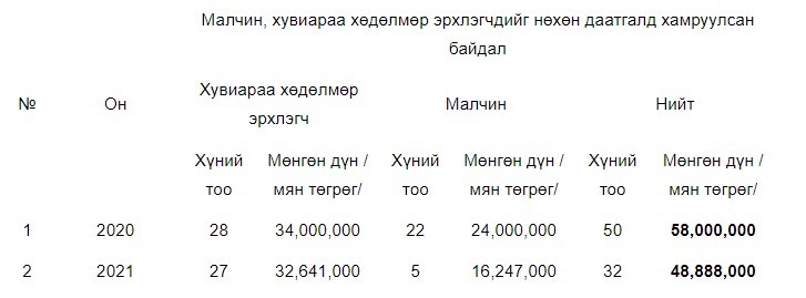-Малчин, хувиараа хөдөлмөр эрхлэгчийн тэтгэврийн даатгалын шимтгэлийг нөхөн төлүүлэх тухай хууль батлагдаж, 2020-2021 онд хэрэгжиж байна. Малчин, хувиараа хөдөлмөр эрхлэгч иргэд 1995-2019 хүртэлх нийгмийн даатгалын шимтгэлийн тасарсан хугацаагаа нөхөн төлөх боломжтой. “Тэтгэврийн даатгалын шимтгэлийг нөхөн төлүүлэх” гэдэг нь нийгмийн шилжилтийн явцад хөдөлмөр эрхлэлтийн статус нь өөрчлөгдөж, эрхэлж байгаа ажил, үйлчилгээний онцлогоос хамааран тэтгэврийн даатгалын шимтгэлээ тухайн хугацаанд нь төлж чадаагүй малчин, хувиараа хөдөлмөр эрхлэгч нь тэтгэврийн даатгалын шимтгэлээ 2020 оны хөдөлмөрийн хөлсний доод хэмжээгээр тооцож, нөхөн төлөх нэг удаагийн арга хэмжээ юм.