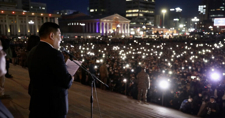 Жагсаж буй залуучуудаа Та бүхэн нэгдсэн зохион байгуулалтад орж төлөөллөө сонговол Засгийн газар хамтран ажиллахаа дахин илэрхийлье.