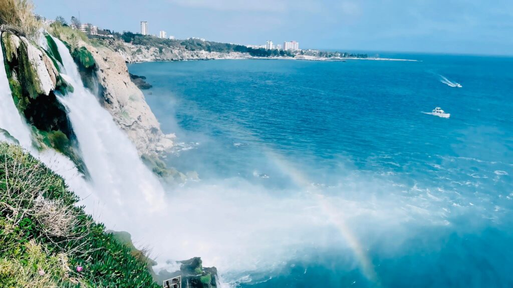 Зам зуур турк хоолны газарт тухалж өдрийн хоолоо идчихээд аяллын анхны цэг Дюден хүрхрээ рүү хөдлөв. Газар дундын тэнгисийн хамгийн том тус хүрхрээ д.т.дээш 40 метрийн өндрөөс урсана. Энд ирсэн жуулчдын заавал үзэх ёстой үзэсгэлэнт газрын нэг.
