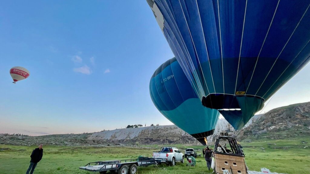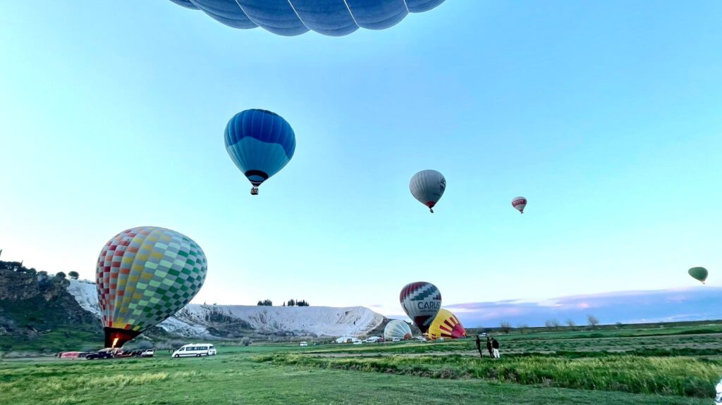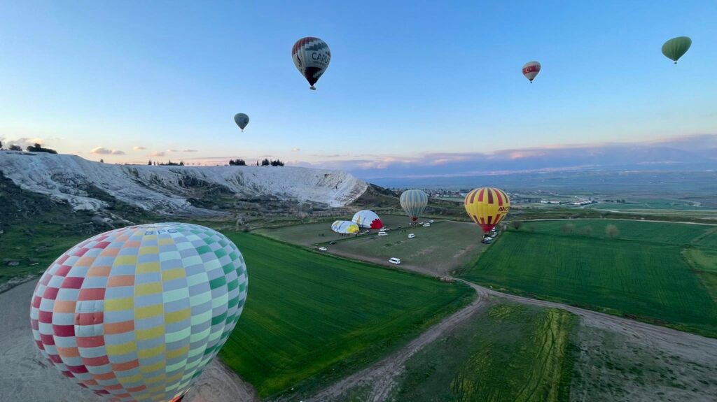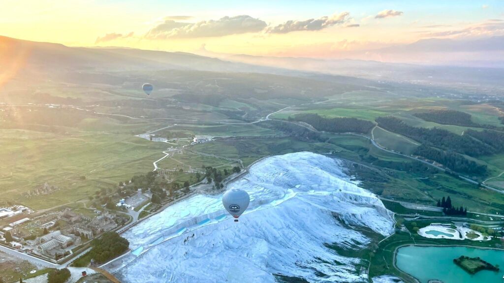 Агаарын бөмбөлгөөр нисэв: Турк улсыг зорин ирсэн жуулчдын заавал хийж үзэх ёстой зүйлийн нэг нь агаарын бөмбөлгөөр зугаалах. Халуун агаарын бөмбөлгөнд суугаад Денизли хотыг алган дээрээ тавьсан мэт тольдож, шинэ өдрийн нарыг тэнгэрт угтана. Хөтөлбөрт багтаагүй учир 170 ам.доллар төлсөн. Энгийн үед өндрөөс айх мэдрэмж төрдөг ч агаарын бөмбөлөг алгуурхан хөөрдөг учраас айх мэдрэмж огт төрөөгүй. Харин ч уул тал дүүрэн хараа бэлчээж, памукаллег дээрээс нь харж, байгалийн сайхныг бахдав.