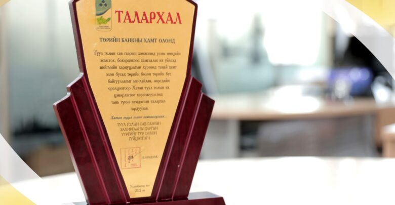 Нийслэлийн иргэдийн ундны усны эх үүсвэр болсон Хатан Туул голоо хамгаалах үйлсэд өөрсдийн үнэтэй хувь нэмрийг оруулж, төрийн болон төрийн бус байгууллагыг манлайлан, өөрсдийн оролцоогоор Хатан Туул голын сав газарт их цэвэрлэгээг хийсэнд талархал илэрхийлж, БОАЖЯ-ны харъяа Туул голын сав газрын захиргаанаас Төрийн банкны хамт олонд “ТАЛАРХАЛ”-ыг гардууллаа.