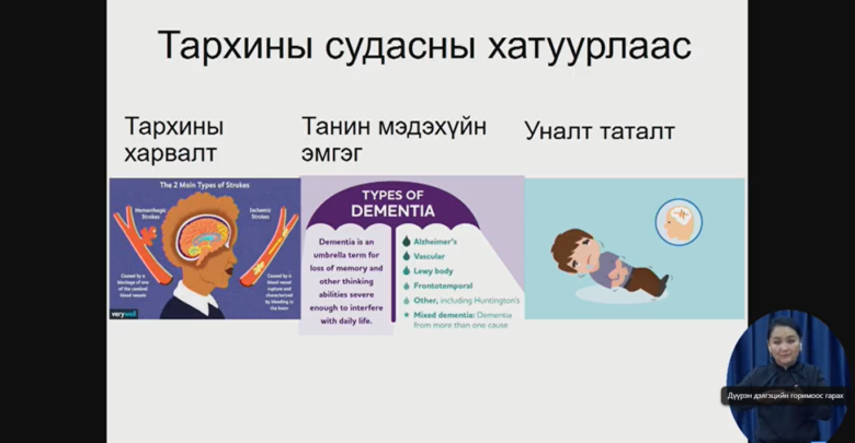 УНТЭ-ийн мэдрэлийн эмнэл зүйн төвийн мэдрэлийн эмч, АУ-ны магистр, Мэдрэлийн ахлах зэргийн эмч Б.Саруулцэцэг “Тархины судасны хатуурал” өвчний талаар мэдээлэл өглөө.
