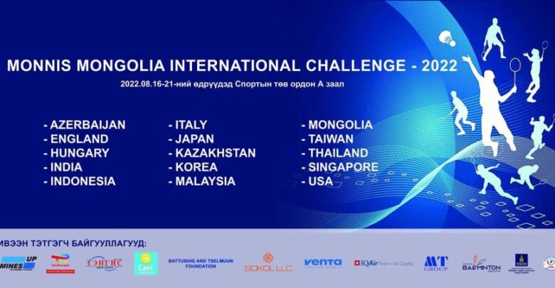 Монгол Улсын нийслэл Улаанбаатар хотод бадминтоны “Monnis Mongolia International Challenge-2022” олон улсын тэмцээн наймдугаар сарын 16-21-ний өдрүүдэд Спортын төв ордонд зохион байгуулна.