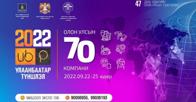 Хүнс, хөдөө аж ахуй, хөнгөн үйлдвэрийн яам, Нийслэлийн Засаг даргын Тамгын газар, Монголын худалдаа аж үйлдвэрийн танхим хамтран зохион байгуулж буй “Улаанбаатар түншлэл – 2022” олон улсын үзэсгэлэн яармаг есдүгээр сарын 22-25-ны өдрүүдэд Мишээл экспо үзэсгэлэнгийн танхимд болох гэж байна.