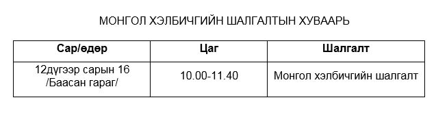 Мөн 2013 оны Засгийн газрын 37-р тогтоолын дагуу авагддаг Монгол хэл бичгийн шалгалтыг ЭЕШ-тай хамт зохион байгуулна.