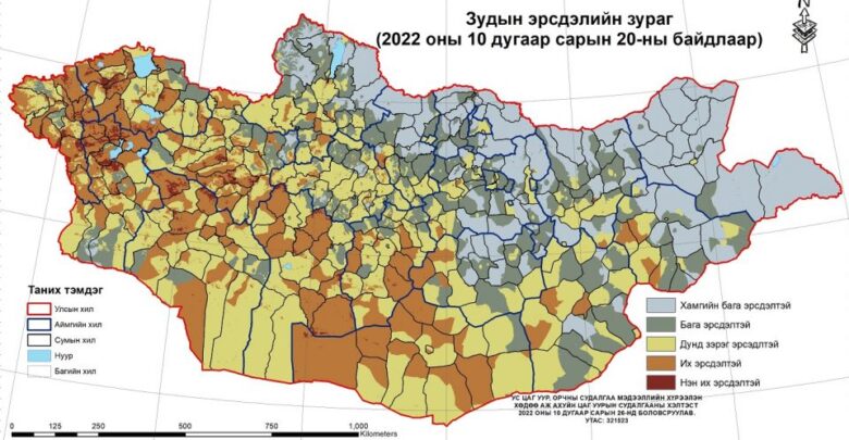 Ус цаг уур, орчны судалгаа мэдээллийн хүрээлэнгээс ган зуншлага, цас зуд, бэлчээртэй холбоотой газрын ажиглалтын болон хиймэл дагуулын олон төрлийн мэдээг нэгтгэн боловсруулж, зудын эрсдэлийн зураглалыг гаргасан байна.