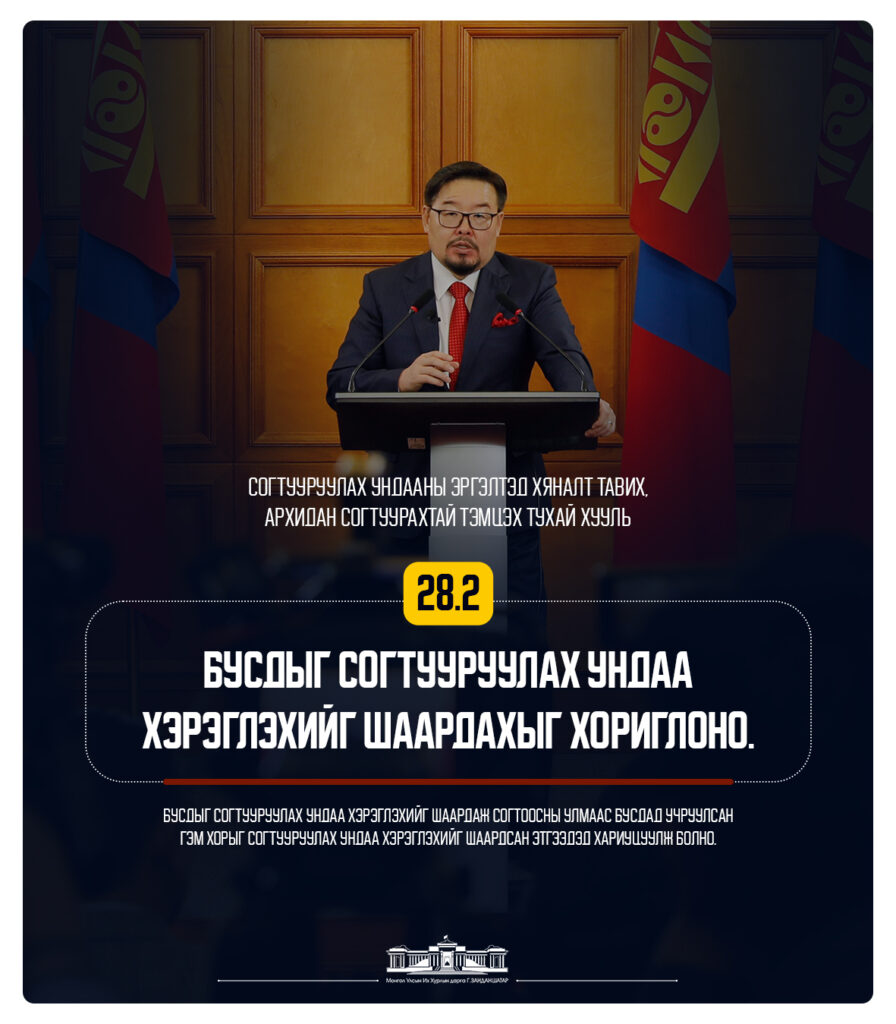 УИХ-ын дарга Г.Занданшатар өнөөдөр “Согтууруулах ундааны эргэлтэд хяналт тавих, архидан согтуурахтай тэмцэх тухай” хуулийн талаар сэтгүүлчдэд танилцууллаа. Архи, согтууруулах ундааны нийгэмд учруулж буй хор хөнөөлийг бууруулах, бусдыг архидан согтууруулах ундаа хэрэглэхийг шаардаж биеэ авч явах чадваргүй болгох зэрэг нийгмийн гажуудсан үзэгдлийг бууруулахад тус хуулийн гол зорилго оршиж байгаа юм.
