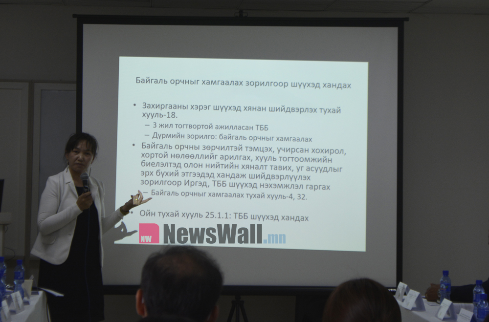 Байгаль орчны эрх зүй, тэр дотроо цөлжилт, газрын доройтлыг бууруулах эрх зүйн баримт бичгүүдийн хэрэгжилт ямар байна вэ гэдэг талаар танилцууллаа. Ер нь Монгол Улсын хэмжээнд энэ асуудалд гол хөрөнгө оруулагч нь гадны хөрөнгө оруулагчид, донор байгууллагууд байна. Цөлжилтийг бууруулах цогц шийдэл нь монголчууд өөрсдөө энэ асуудалд анхаарлаа илүү ихээр хандуулж, засаж залруулж, эргээд ашгаа хүртээд явах бүрэн боломжтой .