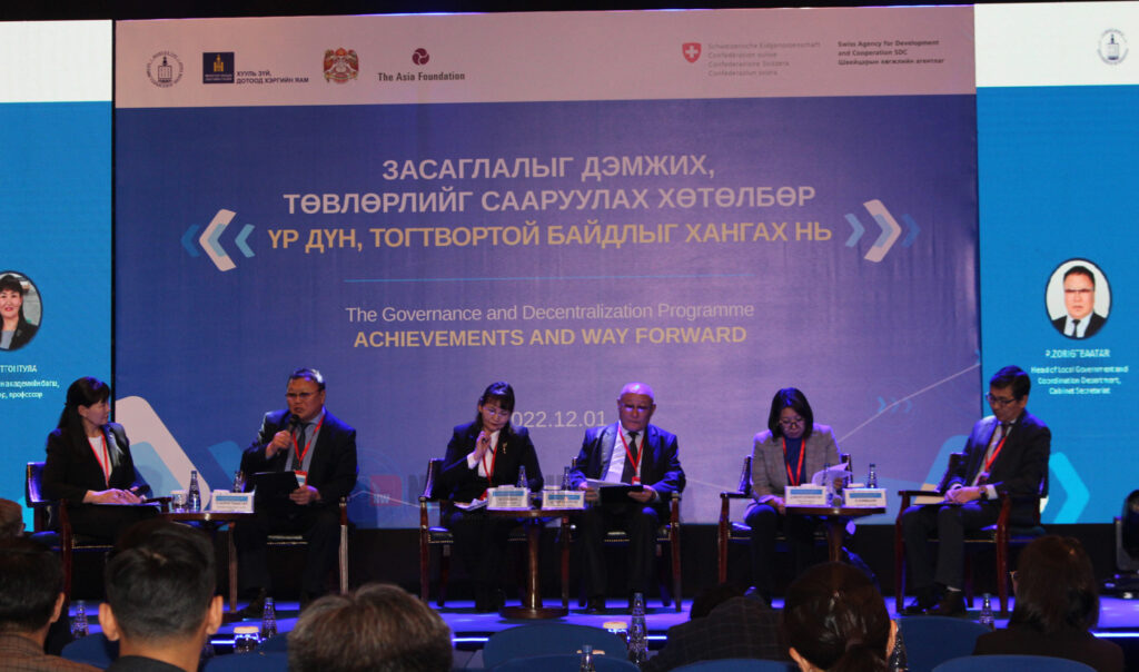 Монгол Улсын Засгийн газар, Нийслэлийн Засаг даргын Тамгын газар, Азийн сан, орон нутаг, иргэний нийгмийн байгууллагуудтай хамтран Швейцарын хөгжлийн агентлагийн дэмжлэгтэйгээр 2012-2022 онд хэрэгжүүлсэн Засаглалыг дэмжих, төвлөрлийг сааруулах хөтөлбөрийн хаалтын арга хэмжээ өнөөдөр боллоо.