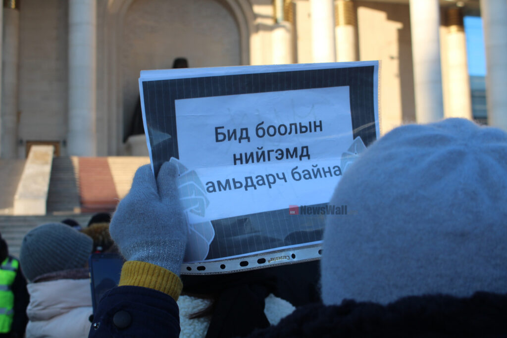 Уг шаардах хуудсын хариуг тогтсон цагт өгөхгүй бол жагсагчид тэмцлийн дараагийн хэлбэрт шилжихээ илэрхийлэн өнөөдрийн жагсаалыг өндөрлөлөө.