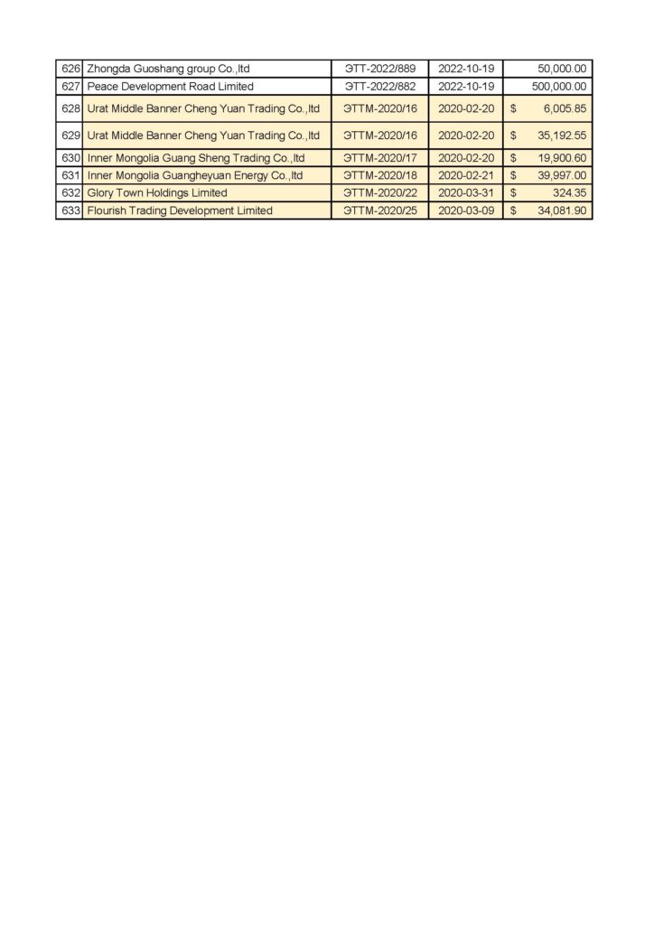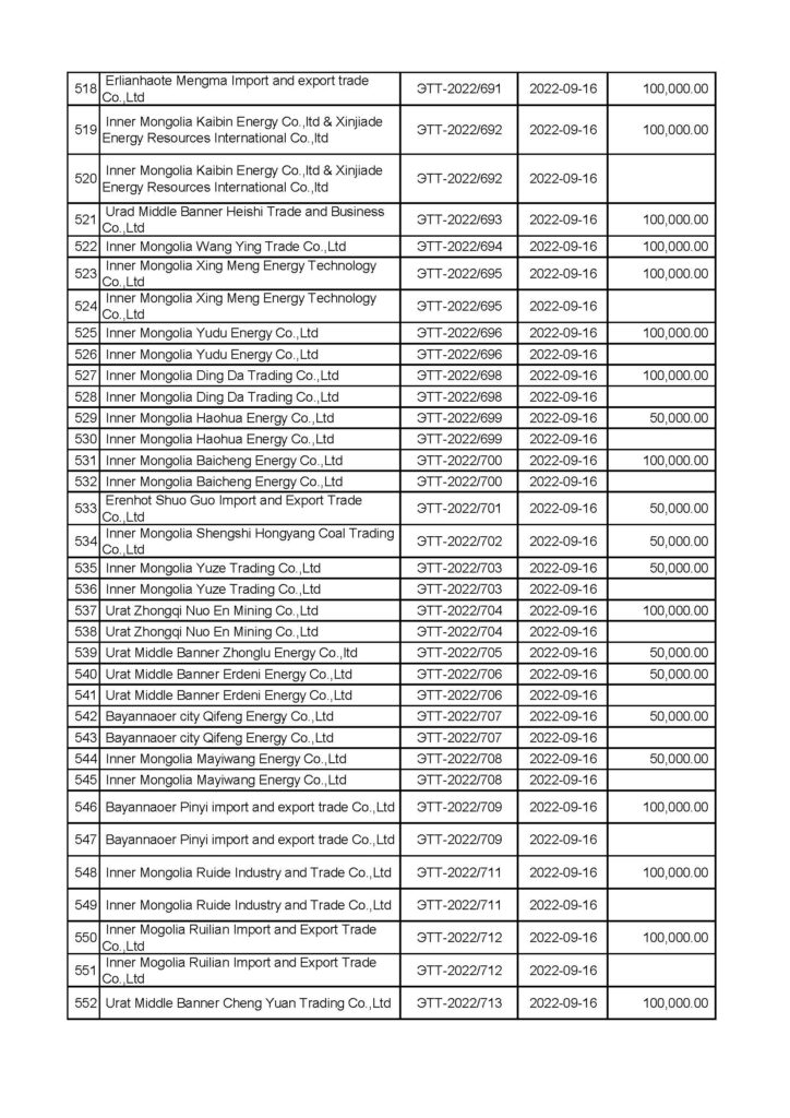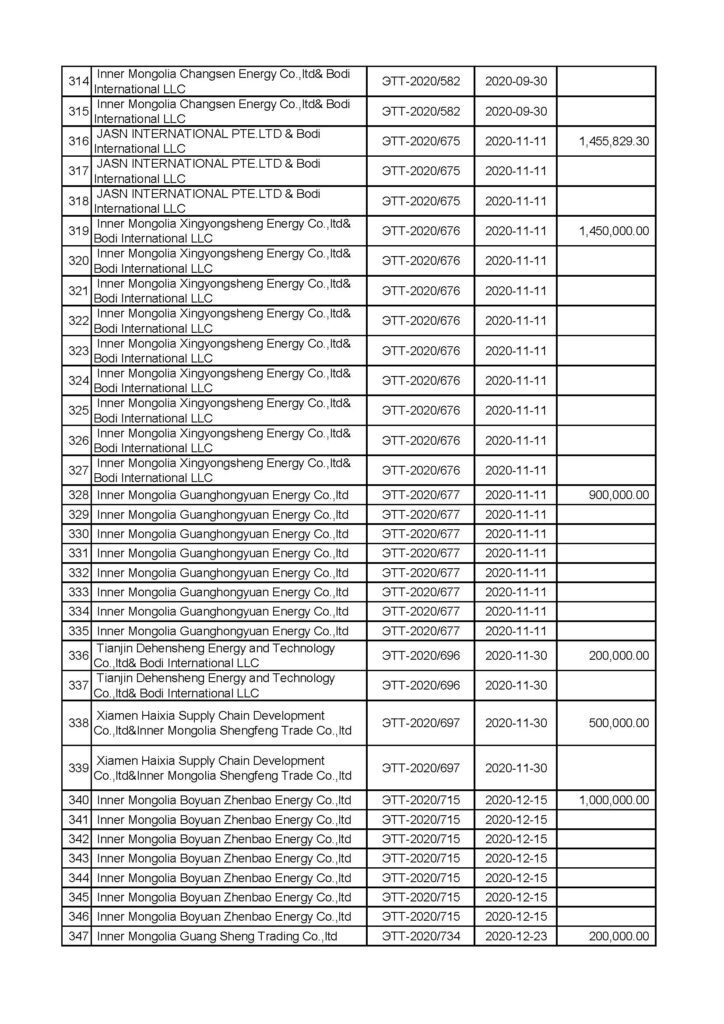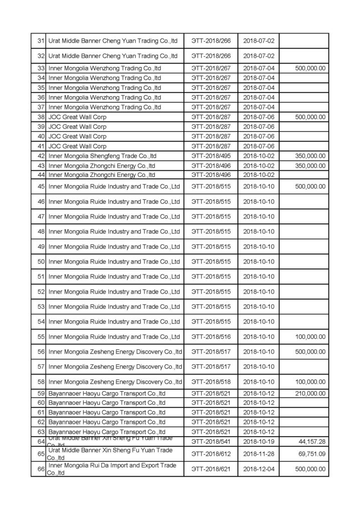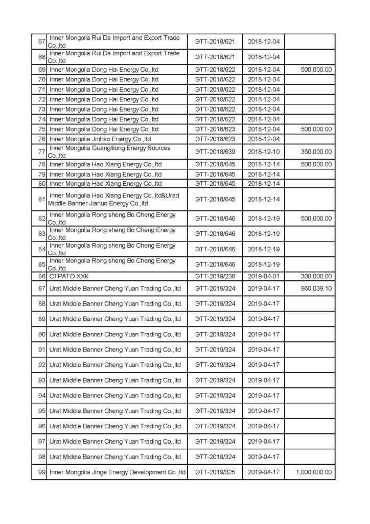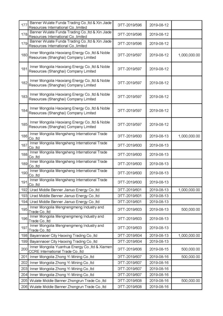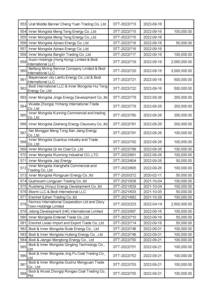 “Эрдэнэставан толгой” ХК-ийн нүүрс борлуулалтын мэдээлэл