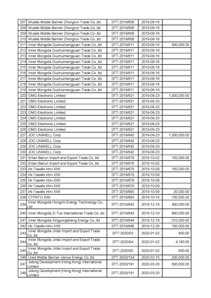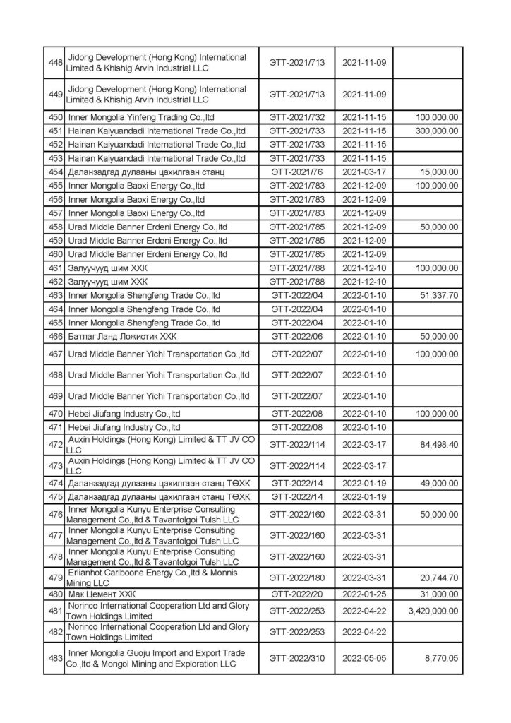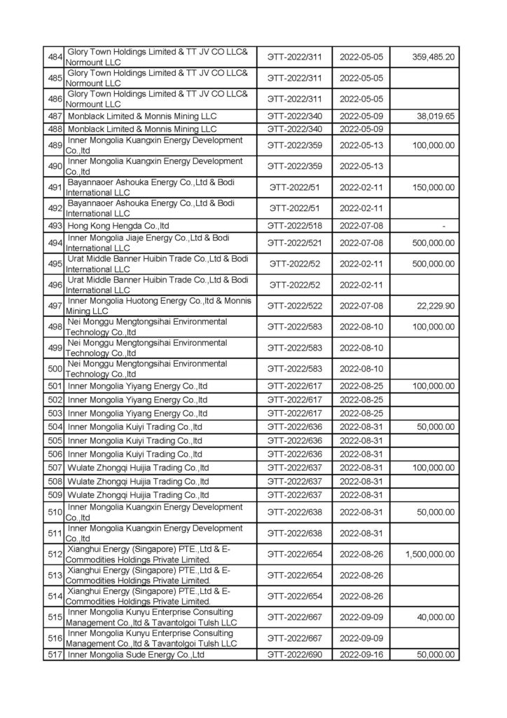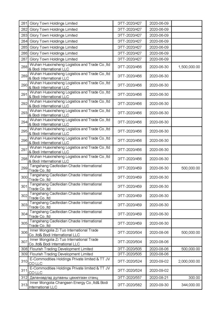 Авлигатай тэмцэх газрын Мөрдөн шалгах хэлтэс “Эрдэнэс Тавантолгой”, “Тавантолгой төмөр зам” төрийн өмчит компаниудын эрх бүхий албан тушаалтнууд тендер сонгон шалгаруулах, нүүрс худалдах, худалдан авах гэрээ байгуулах, улсын хилээр хууль бусаар нэвтрүүлэх, олон улсын ачаа тээврийн “С” зөвшөөрөл олгох, нүүрс тээврийн төмөр замын барилгын ажил гүйцэтгэхдээ бусдад давуу байдал бий болгосон, хахууль авсан, үндэслэлгүйгээр хөрөнгөжсөн байж болзошгүй асуудалд одоогоор хэрэг бүртгэлтийн 11 хэрэг, мөрдөн байцаалтын 7 хэрэг нээн мөрдөн шалгах ажиллагааг явуулж байна.