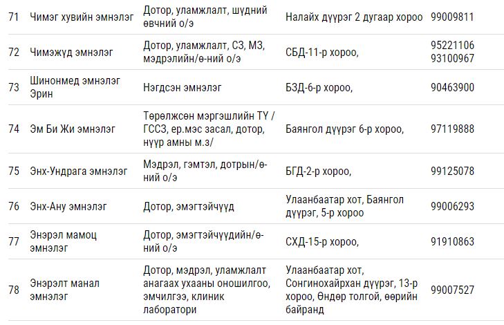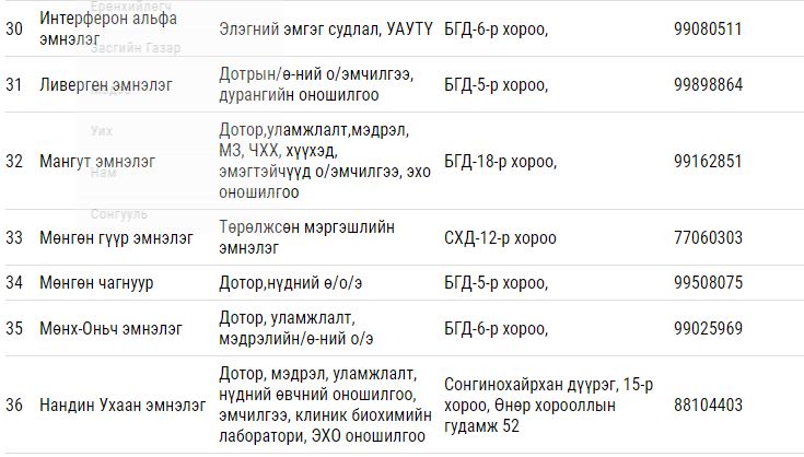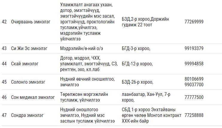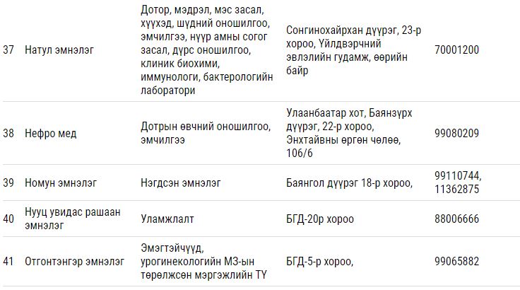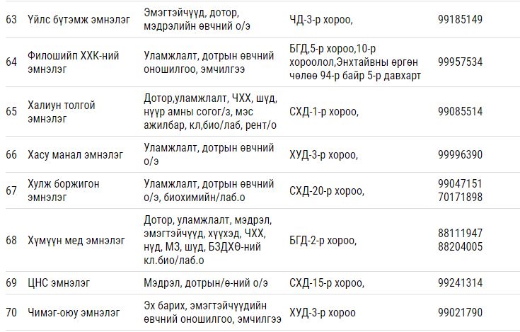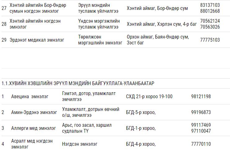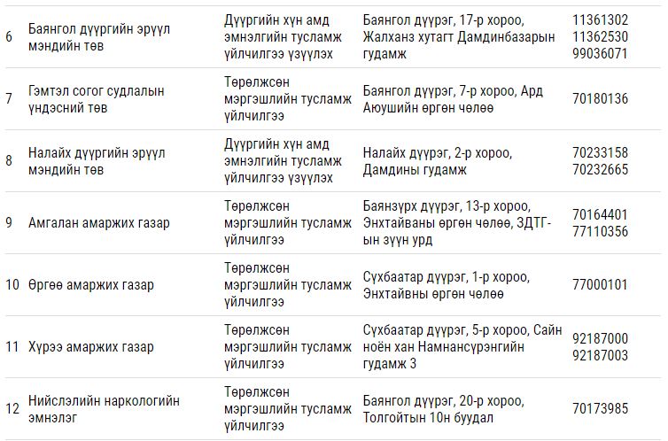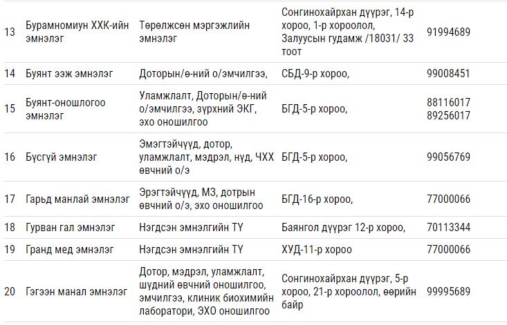 Дээрх тусламж үйлчилгээ үзүүлэх гэрээт ЭМБ-ууд: