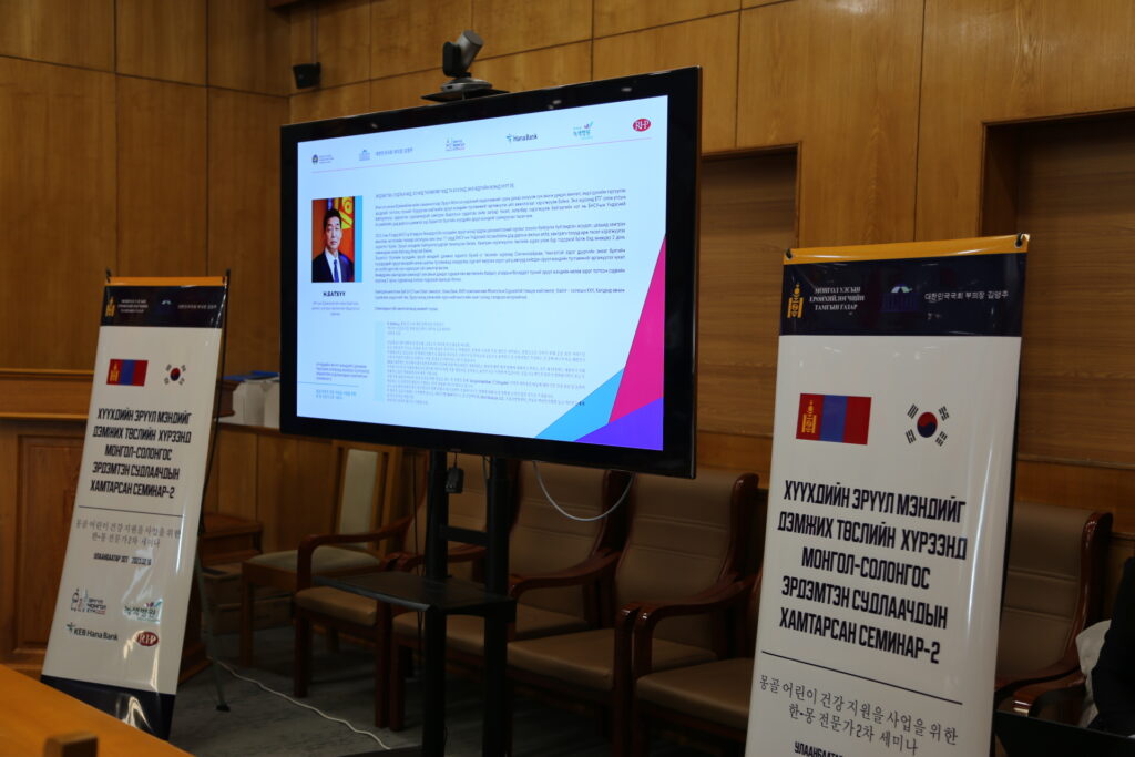 “Эрүүл Монгол хүн” үндэсний хөдөлгөөний хүрээнд зорилтот бүлгийн хүүхдүүдэд чиглэсэн эрүүл мэндийн тусламж үйлчилгээг өргөжүүлэх төслийн хүрээнд зохион байгуулагдсан өнөөдрийн семинарт БНСУ талаас Грийн хоспиталын захирал, Ноён Им Сан Хёг “Солонгос улс хэрхэн сүрьеэ өвчний тархалттай тэмцсэн туршлага” сэдвээр, харин тус эмнэлгийн хяналтын тасгийн эрхлэгч Чой Юу Сон “Солонгос улсын сүрьеэгийн өнөөгийн нөхцөл байдал болон эмчилгээ, менежментийн систем” -ийн талаар мэдээлэл өгч, илтгэл тавилаа.