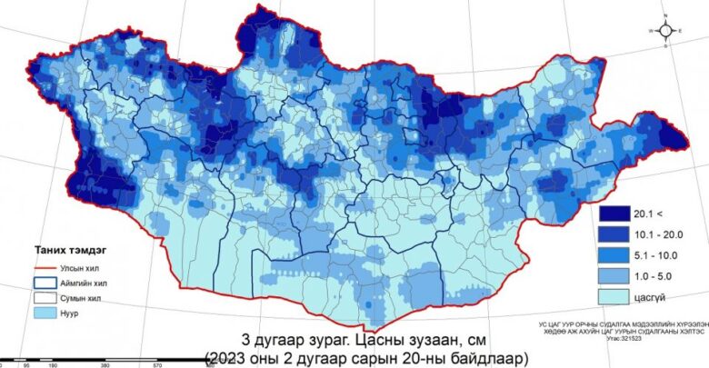 Нийт нутгийн 60 гаруй хувь нь цастай байна
