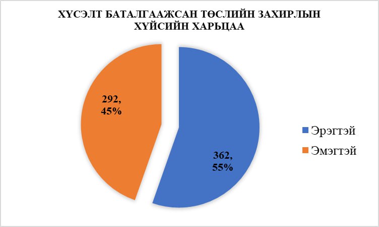 Мөн нийт зээл хүссэн аж ахуйн нэгжийн эрэгтэй-55.3%, эмэгтэй-44.7% захиралтай байна.