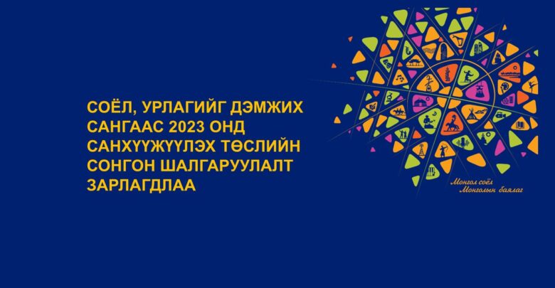 Соёлын яамнаас соёл, урлагийг хөгжүүлэх, сурталчлан таниулах, соёлын өвийг бүртгэх, судлах, хадгалан хамгаалах, сэргээн засварлах, түгээн дэлгэрүүлэх зорилгоор Соёл, урлагийг дэмжих сангаас 2023 онд санхүүжүүлэх төслийн сонгон шалгаруулалтыг зарлаж байна.