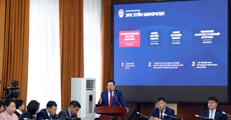 Харин хэлэлцүүлгийн шатанд Шүгэл үлээгчийн эрх зүйн байдлын тухай, Нийтийн албанд нийтийн болон хувийн ашиг сонирхлыг зохицуулах, ашиг сонирхлын зөрчлөөс урьдчилан сэргийлэх тухай зэрэг хуулийн төслүүдээс гадна Авлигатай тэмцэх үндэсний хөтөлбөр хэлэлцэгдэж байгаа гэв. Эрх зүйн шинэчлэлийн хувьд Улсын Их Хурлын ойрын зорилт бол засаглалыг сайжруулах, эдийн засгийн, хүний хөгжлийн реформыг хэрэгжүүлэх гэж тодорхойлсон юм. Энэ хүрээнд тус бүр гурван багц нийт 10 хуулийн шинэчлэл багтаж байгааг тодотголоо.
