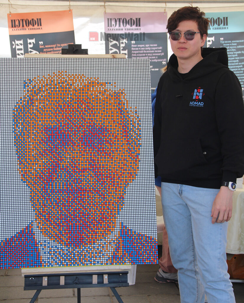 “Унгарын зохион бүтээгч, архитектор Рубик Эрнё 1974 онд “Шидэт шоо” гэдэг нэртэй Рубик шоог анх зохион бүтээсэн. Шооныхоо анхны загварыг хийхдэээ тоглоом болгоё гэсэн санаа байгаагүй. Зүгээр л зургийн хичээлд ашигладаг олон деталийг авч явах нь асуудалтай байсан болохоор нэг бүхэл тэгэхдээ олон задарч хувирч болдог бүтээл хийхийг зорьж байгаад шоог бүтээж байсан. Тэгээд түүнийгээ хийчихээд өнгөөр ялгасныхаа дараа өөрөө хэвлүүлэх гэж 45 хоног оролдоод амжилтгүй болж байсан гэдэг. Хэсэг хугацааг зарцуулж, эвлүүлж сураад түүнийгээ олон нийтэд танилцуулж, үйлдвэрлэж эхэлж байсан түүхтэй. Манай “Нүүдэлчин Рубик” шооны клубын хувьд рубик шооны сургалт болон тэмцээн уралдаануудыг зохион байгуулж ажилладаг. Монгол улсад идэвхтэй үйл ажиллагаа явуулж байгаа 7 клуб ын нэг манай клуб. Манай клубын гишүүд “Европын өдөрлөг”-т Унгар улсын асарт үйл ажиллагаагаа танилцуулж оролцож байна. Мөн бид нар Эрнё Рубикийн хөрөг зургийг 1200 ширхэг шоо ашиглаад хийсэн. Мозаик арт буюу шигтгэмэл олон жижиг зүйлсийг ашиглаад нэг том бүтээл хийх төрөл. Энэ аргачлалыг ашиглаад шооны 6 өнгөөр бүтээлээ хийж, олон нийтэд дэлгэн харуулж байна.