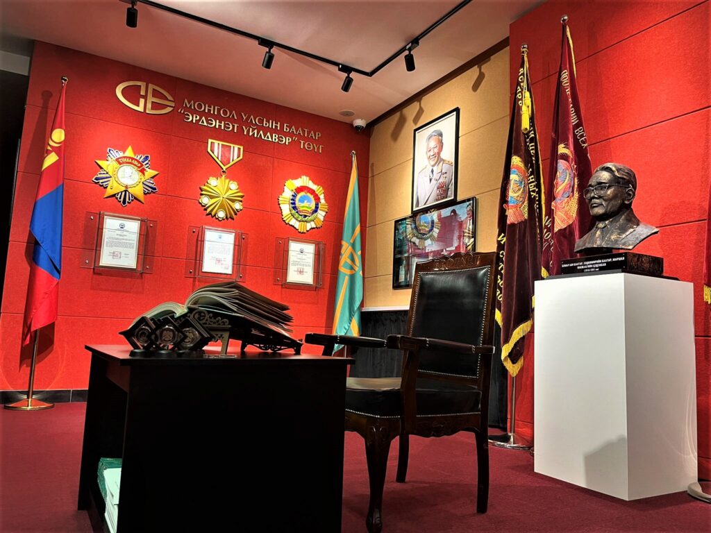 Тэндээсээ Эрдэнэтийн овооны орд газарт байгуулсан, төрийн гурван том одонт Эрдэнэт үйлдвэрийн музейг үзлээ. Үүднийхээ хэсэгт угтсан тайлбарлагч бүсгүй цаг хүрэхтэй үгүйтэй хугацаанд тус үйлдвэрийн гурван цагийн үүх түүхийг ярьж, танхим бүрээр хөтөлж явах. Бид ч анхааралтай нь аргагүй тайлбарлагчийн яриаг сонсож, хөтлөгдөн дагах. Шинэ юм дуулж, мэдэж, таньж авна гэдэг богцондоо хийх боломжийн олз юм. Шинэ орчинд орж, юу ч бодохгүй, юунд ч хойш чангаалдахгүй, тархи толгойгоо амраана гэдэг амьдралаас авах цухасхийсэн таашаал юм. Тэгж явсаар бид тэг дөрвөлжин тавцан суурилуулсан өөр нэг танхимд орж ирэв. Тэрхүү тавцангийн дөрвөн талд дөрөв нь гарч зогсоод, нүдний шил шиг төхөөрөмжөөр үйлдвэрийн ерөнхий бүтцийг цогцоор нь хараадахав. Өнөө яриад байсан олон салангид түүх нүдний өмнө бүрэн бүтнээрээ амилаад ирэх нь тэр.