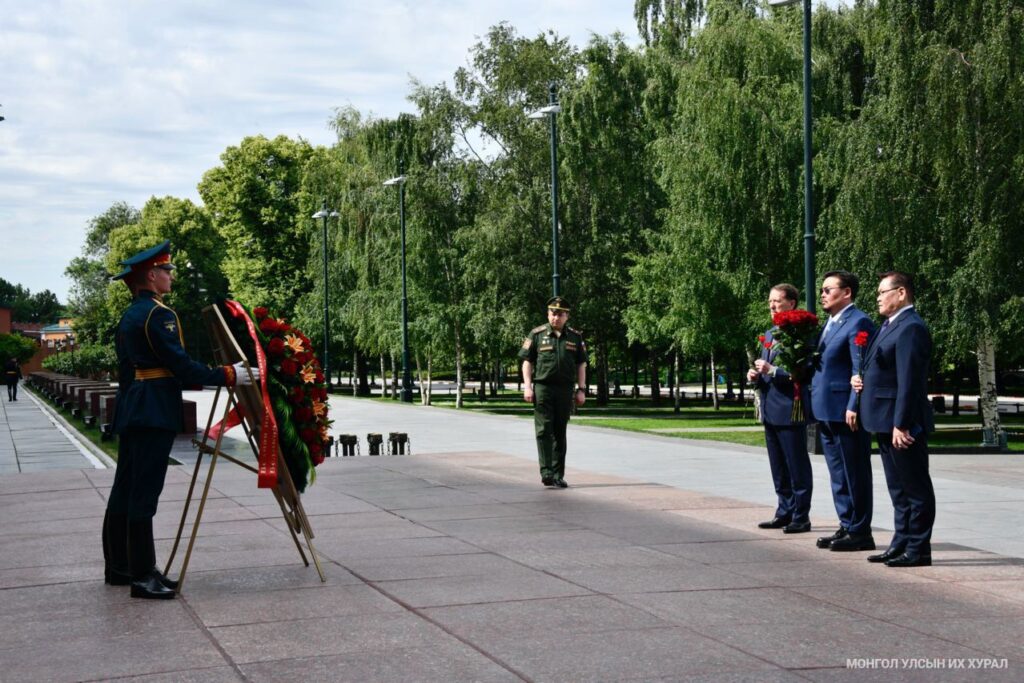 Оросын Холбооны Улсад албан ёсны айлчлал хийж байгаа Монгол Улсын Их Хурлын дарга Г.Занданшатар тэргүүтэй төлөөлөгчид (2023.06.20) Александрын цэцэрлэгт хүрээлэн дэх “Нэр нь үл мэдэгдэх дайчдын” хөшөөнд цэцэг өргөсний дараа ОХУ-ын Холбооны Хурлын Төрийн Думын дарга В.В.Володинтой албан ёсны хэлэлцээ хийлээ.