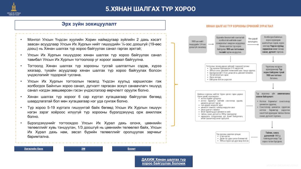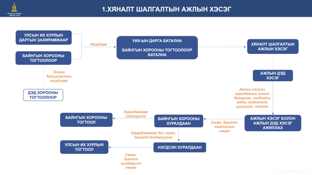 Түүнчлэн томилгооны сонсголын талаар Улсын Их Хурлын тамгын газрын тэргүүн дэд дарга М.Үнэнбат оролцогчдод танилцуулга мэдээлэл хийв.