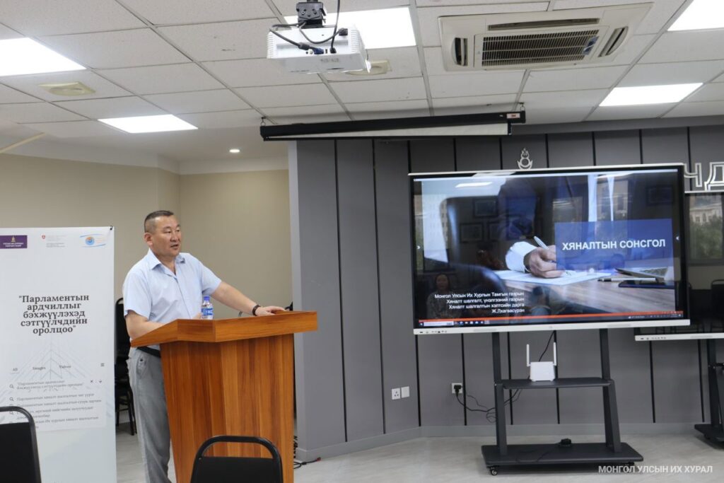Улсын Их Хурлын Тамгын газар, Швейцарын хөгжлийн агентлагийн хамтран хэрэгжүүлж буй “Монгол Улсад Парламентын ардчиллыг бэхжүүлэх нь” төслийн хүрээнд “Бодлогод залуусын хяналт” ТББ-тай хамтран зохион байгуулж буй “Парламентын ардчиллыг бэхжүүлэхэд сэтгүүлчдийн оролцоо” хөтөлбөрийн үндсэн сургалт ( 2023.06.25) Хууль зүйн үндэсний хүрээлэнд зохион байгуулагдлаа.