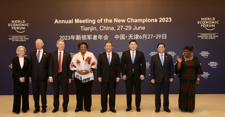 Бүгд Найрамдах Хятад Ард Улсад албан ёсны айлчлал хийж буй Монгол Улсын Ерөнхий сайд Л.Оюун-Эрдэнэ Тяньжин хотноо болж буй Дэлхийн эдийн засгийн чуулга уулзалтын нээлтэд оролцож, Давосын эдийн засгийн форумын үүсгэн байгуулагч бөгөөд Ерөнхийлөгч Клаус Швабтай уулзалт хийв.