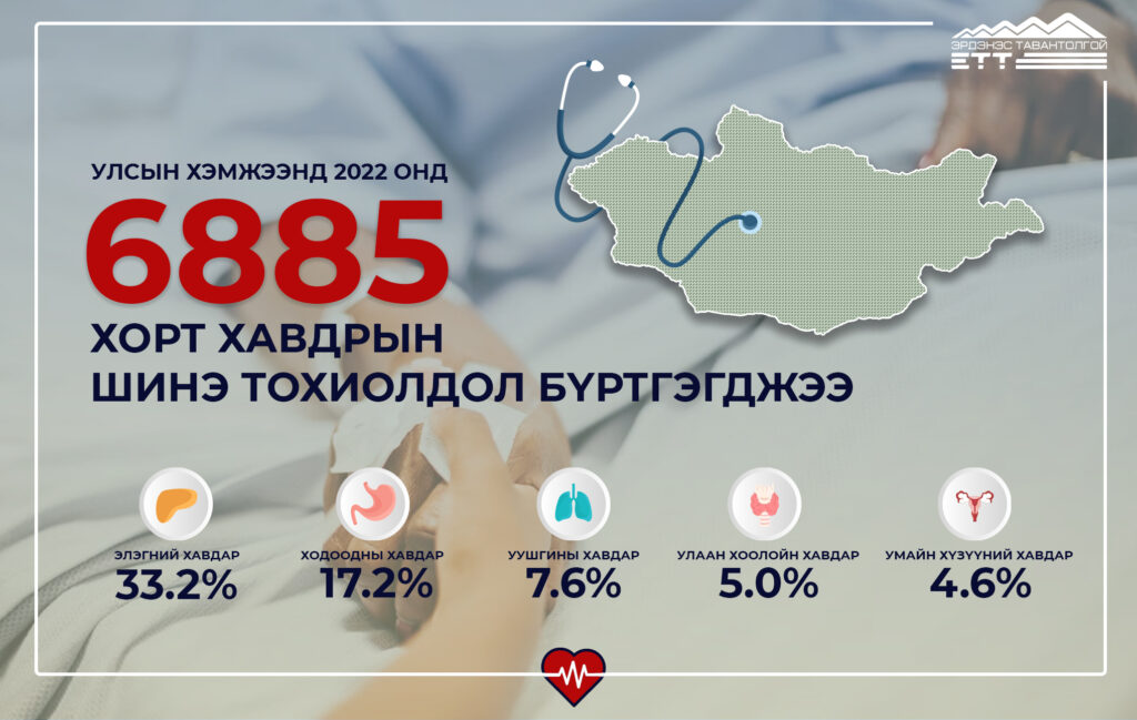 ДЭМБ-аас гаргасан статистик мэдээллээр хорт хавдрын нас баралт, элэгний хорт хавдрын өвчлөлөөр Монгол Улс тэргүүлж буйг анхааруулсан. Хүн амын дунд зөвхөн 2022 онд гэхэд 6885 хорт хавдрын шинэ тохиолдол бүртгэгдсэний 68 хувийг элэг, ходоод, уушги, гуурсан хоолой болон улаан хоолой, умайн хүзүүний хорт хавдар эзэлж байна.