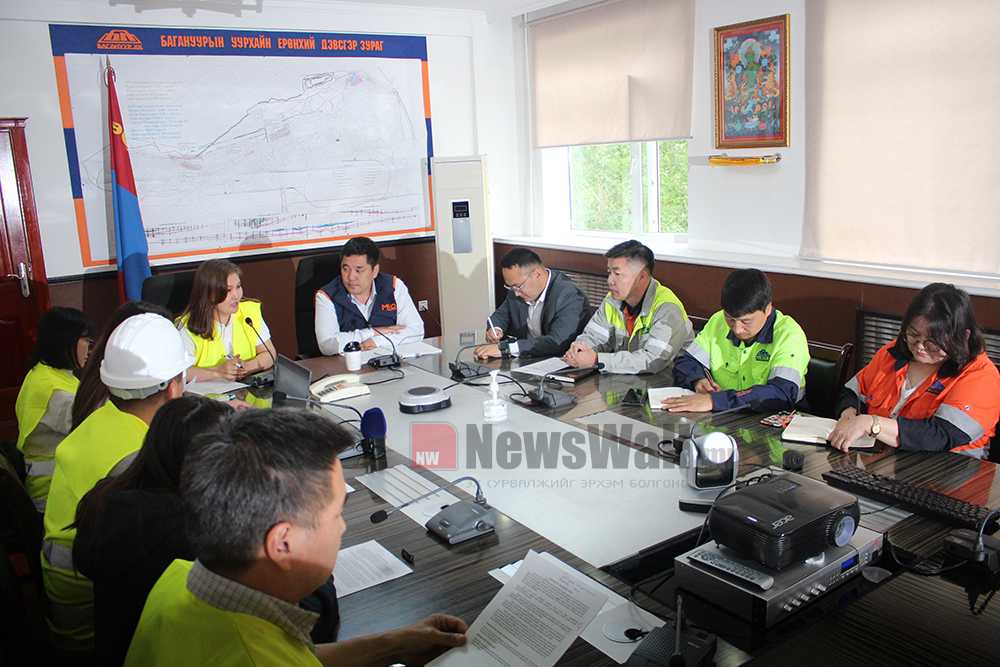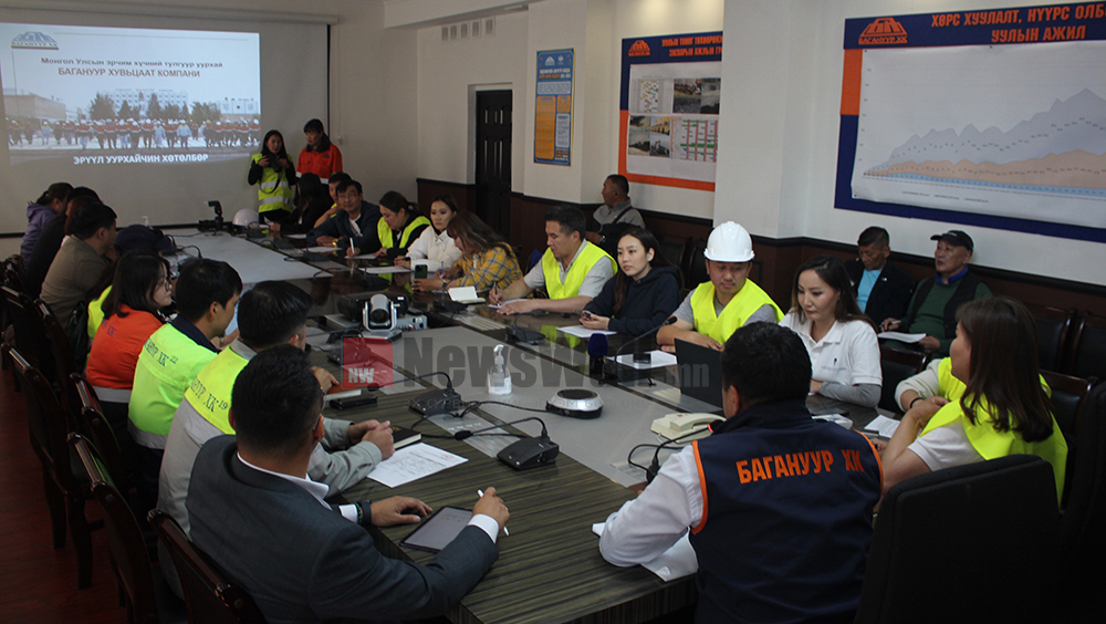 Амралтын өдрөөр зорин очсон сэтгүүлчдийг Багануур ХК-ний Гүйцэтгэх захиралын үүрэг гүйцэтгэгч Д.Түвшинжаргал, Хүний хөгжил, судалгаа эрхэлсэн дэд захирал Д.Даваадаш, ХАБЭА-н Хэлтсийн дарга Ч.Ариунбаатар, Үйлдвэрчний эвлэлийн нэгдсэн хорооны дарга Д.Жавхлан, Үйлдвэрийн эмч Д.Түвшинбаярмаа, Хэвлэл мэдээллийн ажилтан С.Одончимэг нар хүлээн авч, компанийн үйл ажиллагаа болон уурхайчдынхаа эрүүл мэндийн талаар танилцуулга мэдээлэл хийж, дараа нь бидний сонирсон асуултад хариулт өгөв.