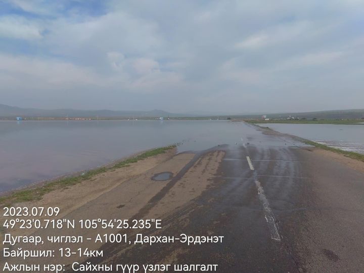 А1001 дугаартай Дархан-Эрдэнэт чиглэлийн улсын чанартай хатуу хучилттай авто замын 11-12 км дээр хараа голын усны түвшин нэмэгдсэний улмаас авто замын 140м далан дээгүүр ус давсан учир замын хөдөлгөөнийг ТҮР ХААГААД байгаа юм.