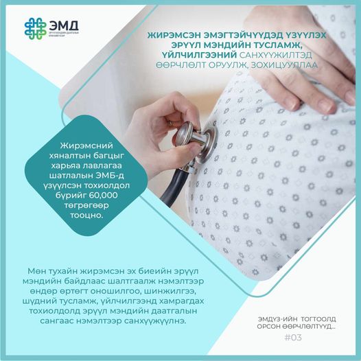 Эрүүл мэндийн байгууллагууд жирэмсэн эхэд үзүүлэх тусламж, үйлчилгээг цогцоор нь үзүүлэхгүй, өөр эмнэлэгт оношилгоо, шинжилгээ хийлгэхээр илгээж чирэгдүүлдэг байсан. Тэгвэл жирэмсний хяналтын багцыг шинэчилж, харьяа лавлагаа шатлалын эрүүл мэндийн байгууллагад үзүүлсэн тохиолдол бүрийг 60,000 төгрөгөөр, мөн тухайн жирэмсэн эхийн биеийн эрүүл мэндийн байдлаас шалтгаалж нэмэлтээр өндөр өртөгт оношилгоо, шинжилгээ, шүдний тусламж, үйлчилгээнд хамрагдах тохиолдолд эрүүл мэндийн даатгалын сангаас нэмэлтээр санхүүжүүлэхээр боллоо.